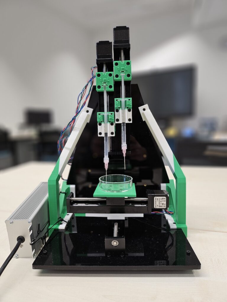 Auf dieser Basis entstand im fib der bbw Hochschule ein eigener Open-Source-Biodrucker: vollständig selbst entwickelt, konstruiert und als funktionsfähiger Prototyp aufgebaut.